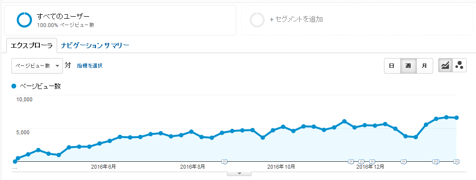 では、コンテンツSEOで成功した一例をご紹介します。下記のアナリティクスは100記事もないブログです。最近では記事を投稿していませんが、トラフィックが伸びていることがわかります。